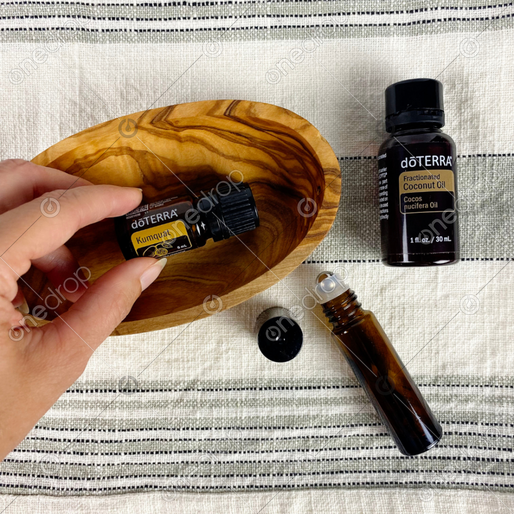 Share this "Happy Roller" recipe with your community. Add 15 drops Kumquat to a 10 mL roller and top with FCO.