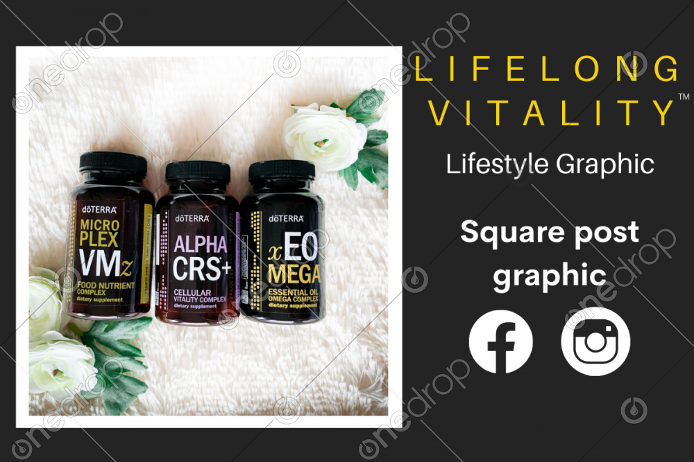 Lifelong Vitality™ LLV bottles with flowers on cream luxe background.