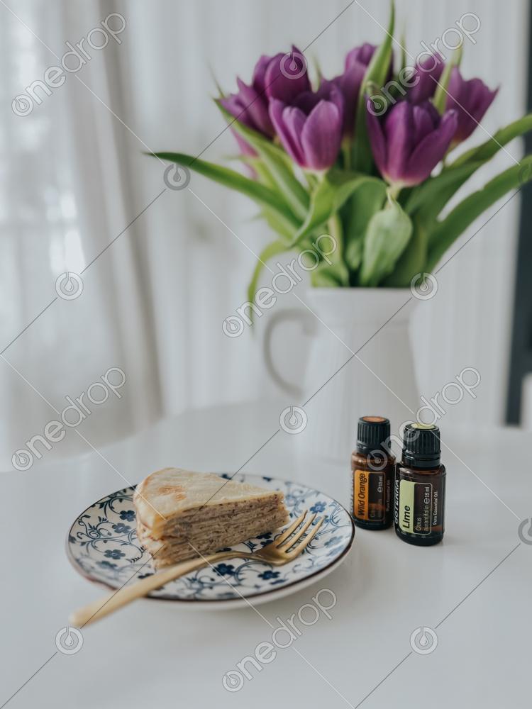 Delicious pancakes cake made with soft cheese and honey, flavoured with Lime and Wild Orange.