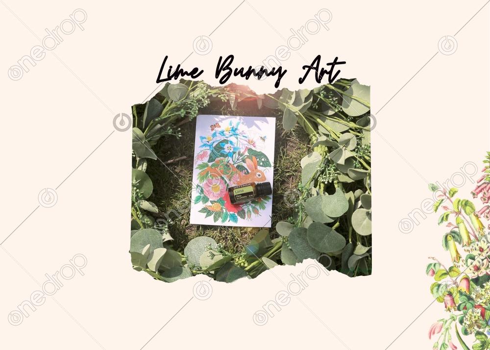 Enjoy this Happy bunny art card with Lime oil surrounded by Eucalyptus. Makes a great Easter day post!