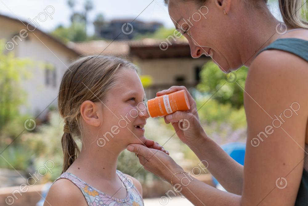 In this photograph a mom is applying DoTerra sunscreen stick to a child's face.