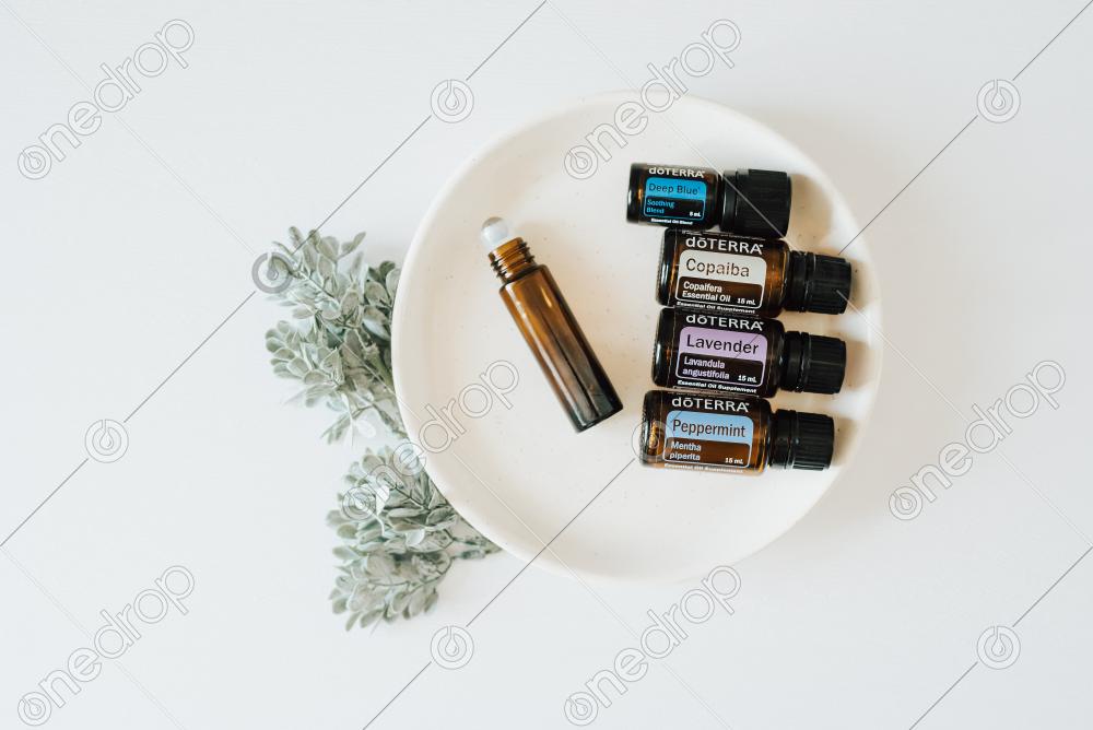 Horizontal Image of Deep Blue, Copaiba, Peppermint and Lavender. Pair these oils together in a Roller Bottle with a carrier oil to help support your respiratory system.