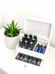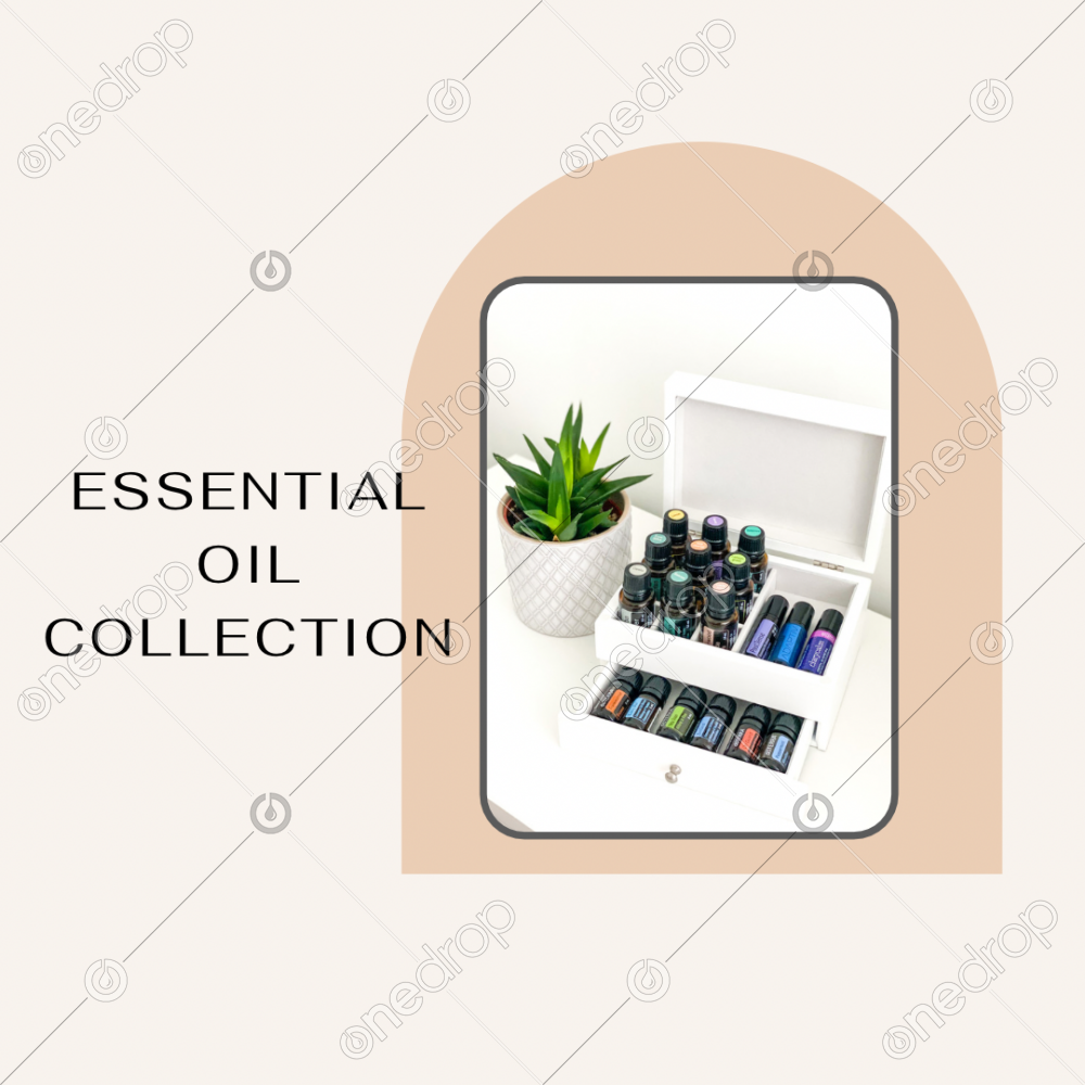 Essential oil collection, bottles and roller bottles.