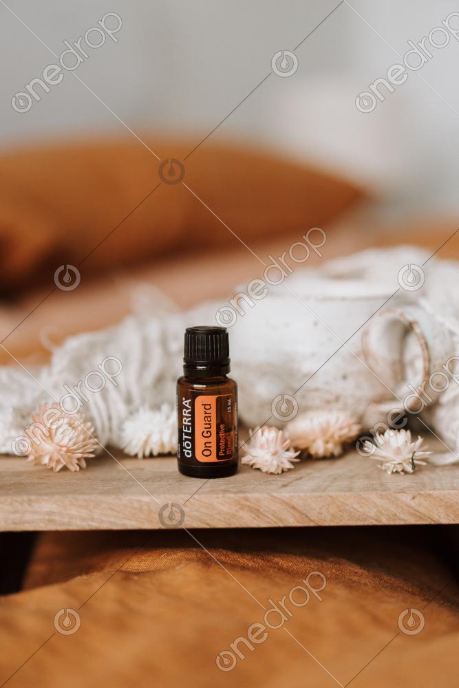dōTERRA On Guard 15ml Bottle with Mug on Bed