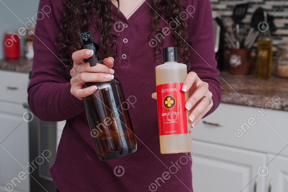 OnGuard Cleaner Concentrate and Glass 16oz spray bottle in the kitchen.