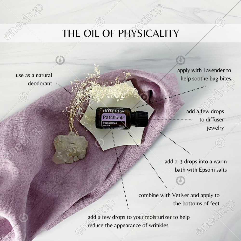 Search "((oil name) emotion + uses flat lay) for specific oils.