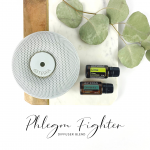 Phlegm Fighter - Diffuser Blend. Flat lay photo of Lime and Eucalyptus essential oil with a brevi