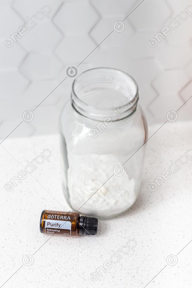 Reduce odor in your home using baking soda and a few drops of Purify. Put a container (like pictured) with a lid with holes underneath your garage can or in your cabinet in order to eliminate odor.