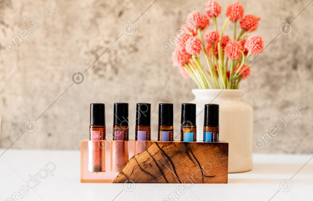 Horizontal Image of Roller Blends in a beautiful Roller Bottle Holder.