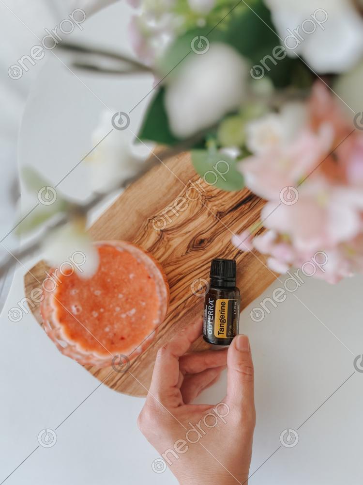 15 ml Tangerine oil with a smoothie glass. The oil has been used for flavouring the drink.