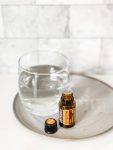 Tangerine Oil open bottle next to water