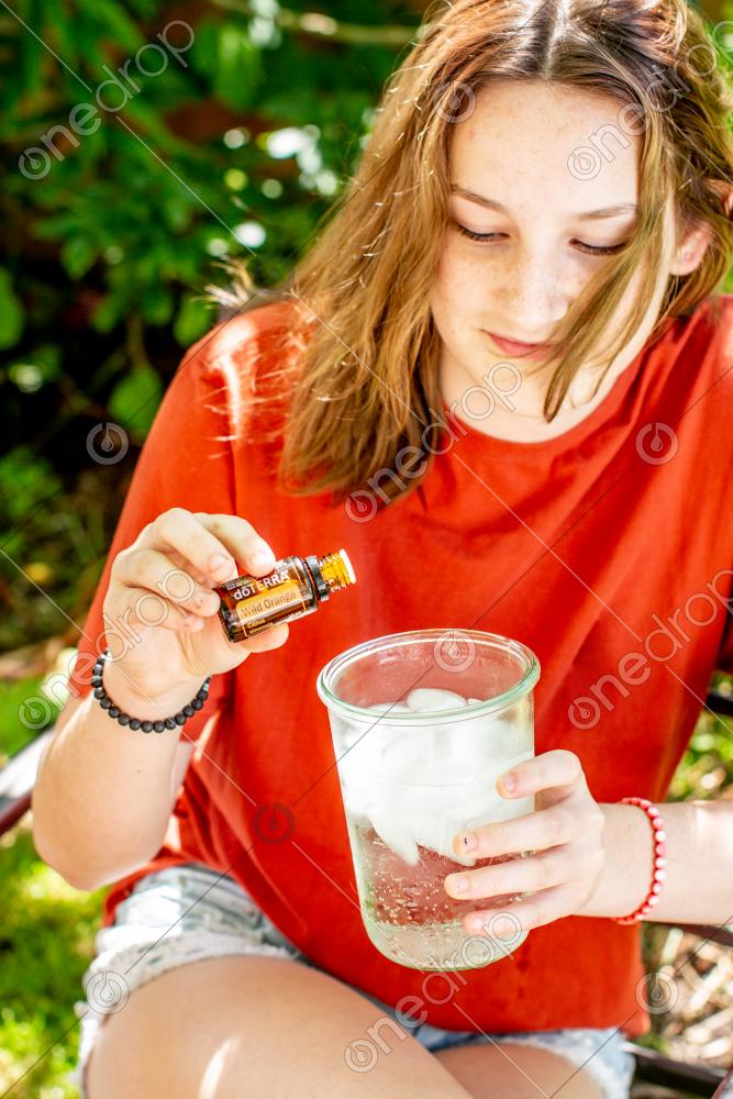 Teen drinking sparkling water with dōTERRA Wild Orange