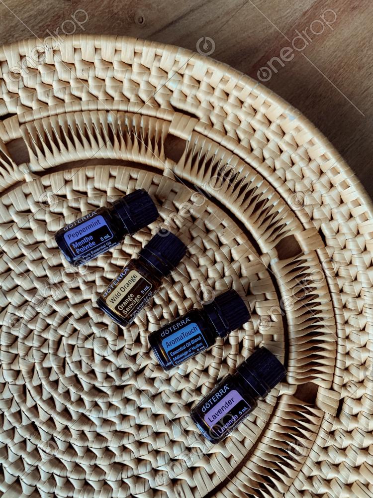 This pack includes 5 mL bottles of: Lavender, Wild Orange, Aromatouch & Peppermint.