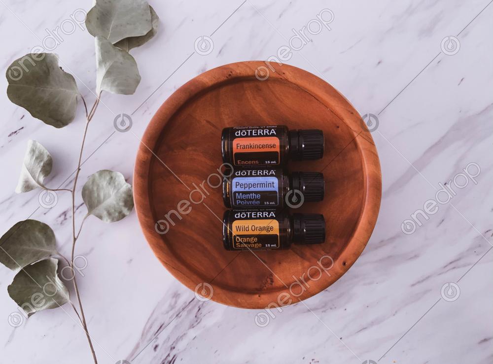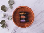 Collection of five images, showing diffuser blends perfect to bring joy this holiday season!