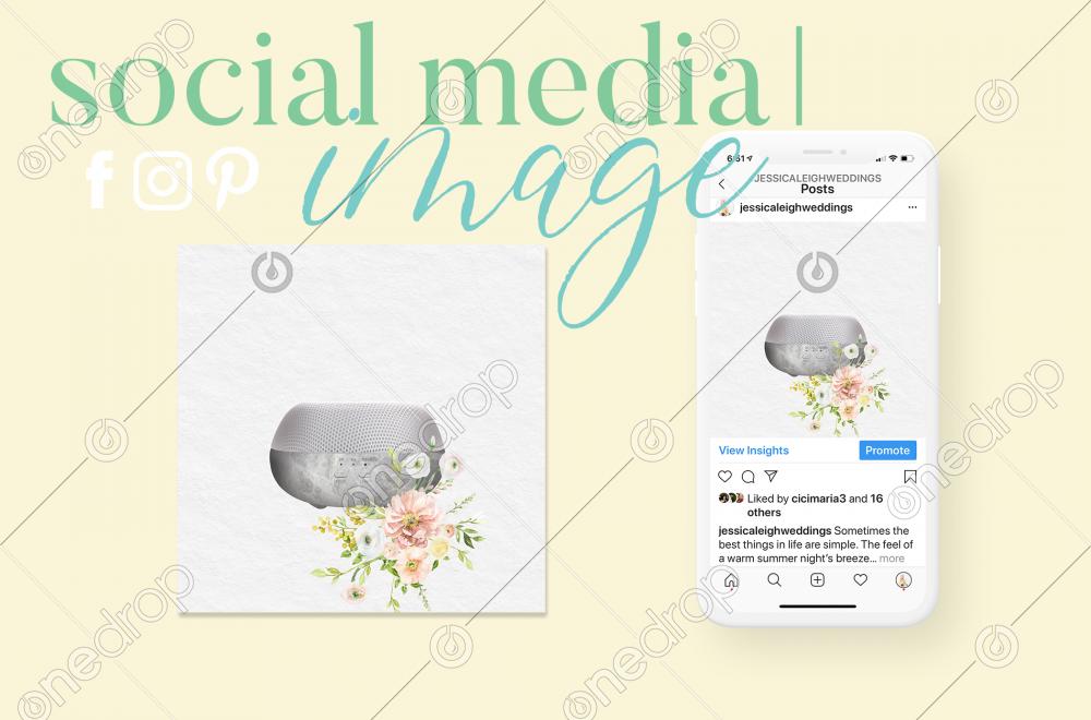 Brevi Stone diffuser social media sized image with flowers and a white background. Perfectly sized for Instagram, but can be used for Facebook or other purposes as well.