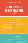 Infographic on the top uses and benefits of Cedarwood essential oil. Utilize this infographic on your blog, email, social media, or presentation to simplify and effectively share info on essential oils in an engaging way! Great way to showcase value for Cedarwood and give your customers easy ways to use it daily.