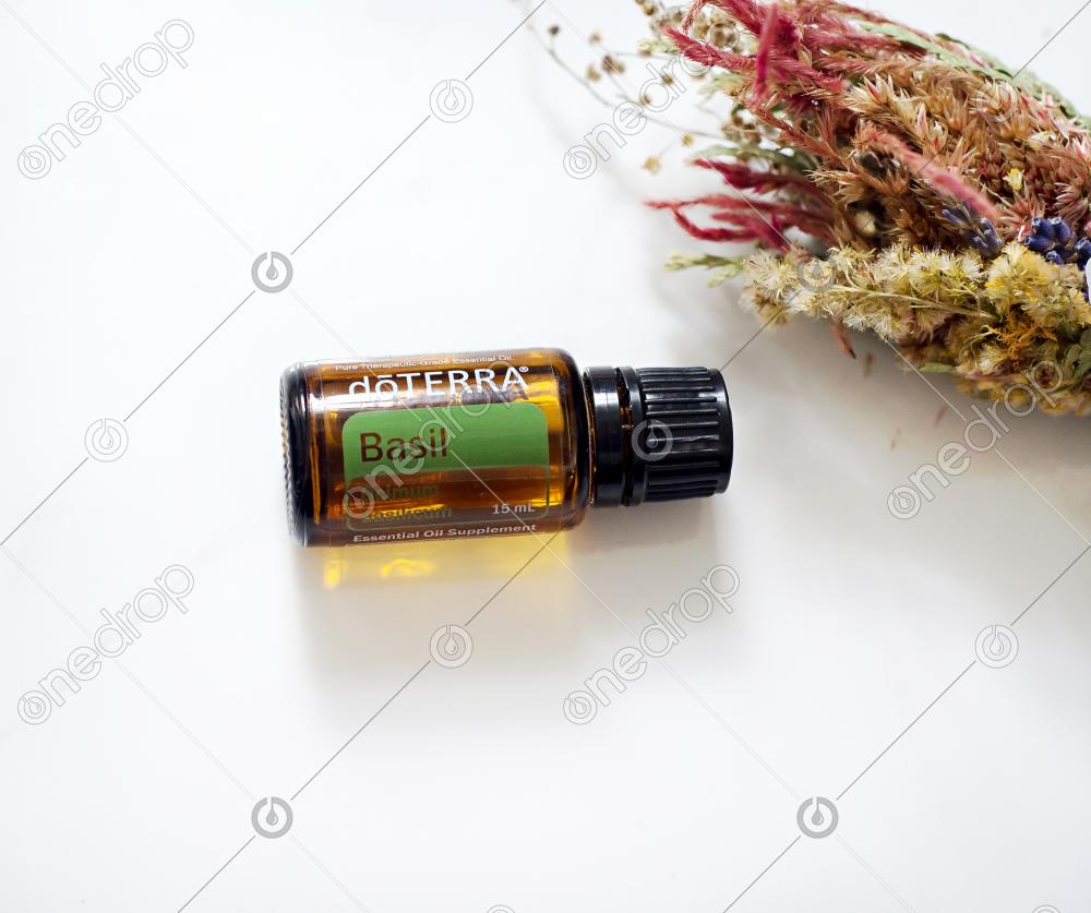 Perfect image to highlight Basil oil. Clean minimalist image.