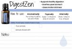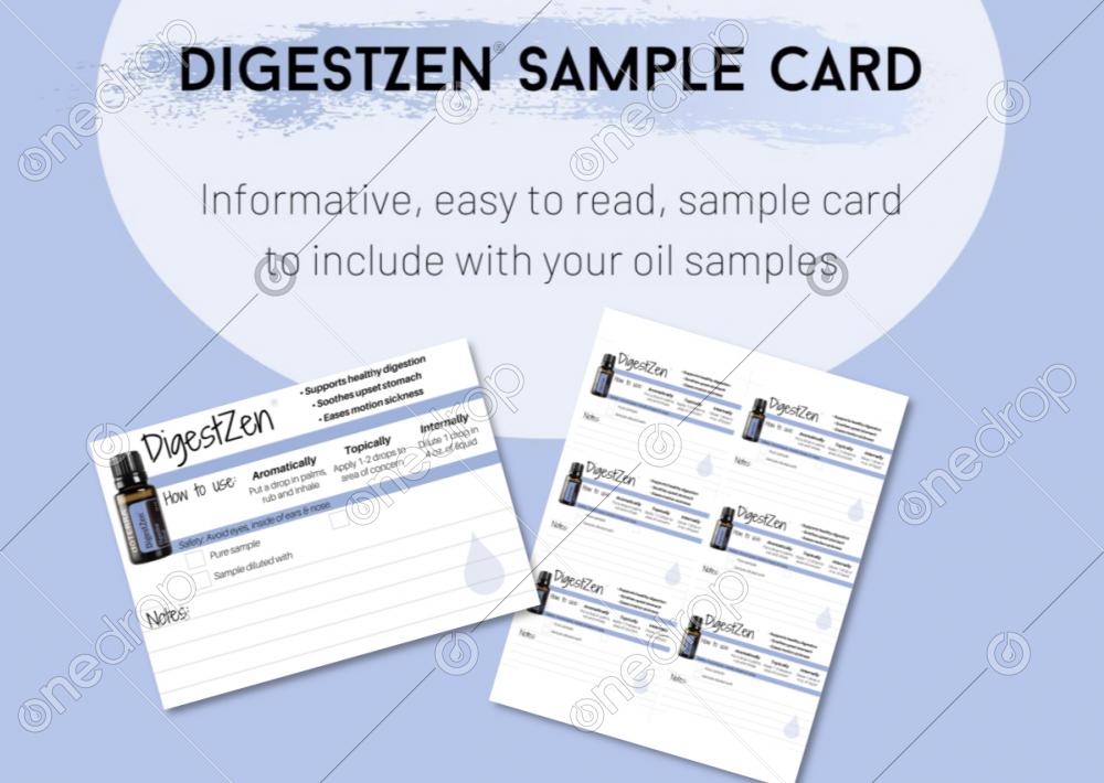 Simple, easy to read DigestZen Sampling Card to send with your oil samples! Basic safety, benefits and usage information.
