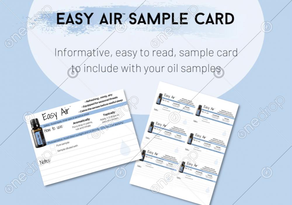 Simple, easy to read Easy Air Sampling Card to send with your sample oils! Basic safety, benefits, and usage information.