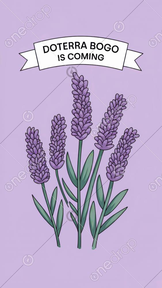 Illustration of Lavender flowers top view, BOGO concept, copy space for text,