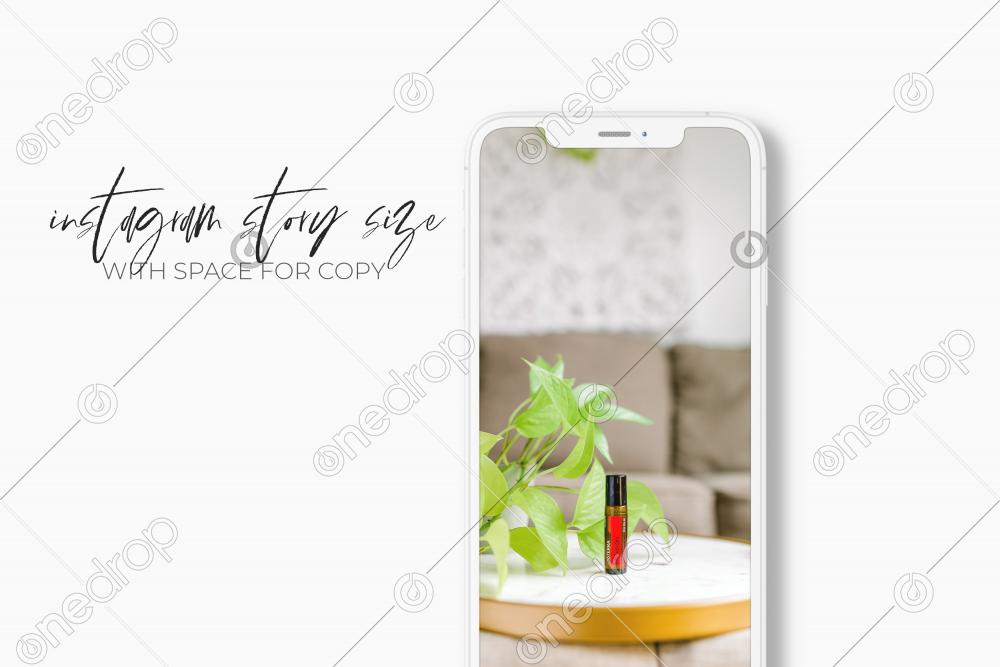 Instagram Stories Size Passion® Touch On White Table and Tray With Plant and Couch Background
