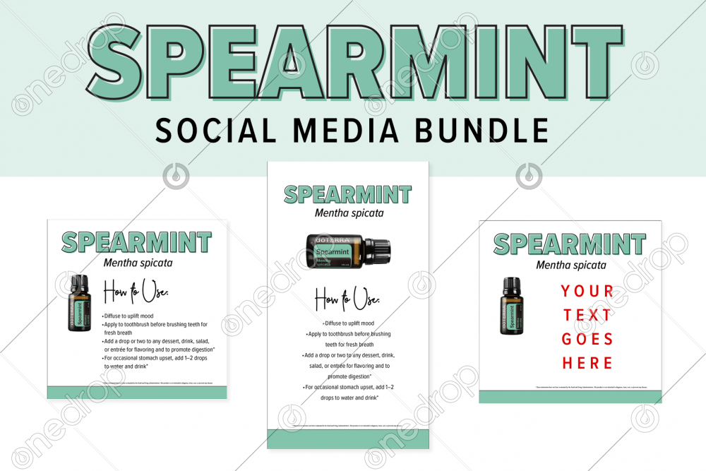These graphics showcase suggested uses for Spearmint essential oil, as well as give space for you to enter your own information.