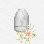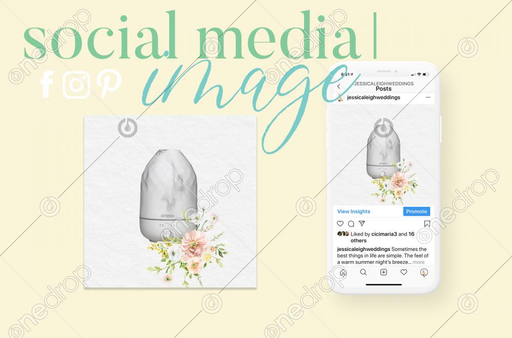 Volo diffuser social media sized image with flowers and a white background. Perfectly sized for Instagram, but can be used for Facebook or other purposes as well.