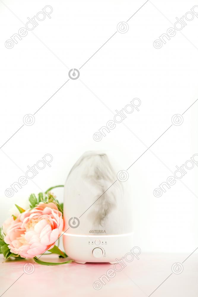 White Volo Marble Diffuser with flowers on a white background. Includes full size, square Instagram feed size, and Insta-stories sized images. High resolution images can be creatively cropped.