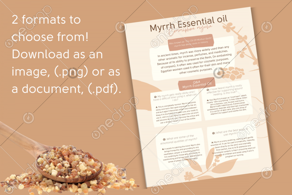 Share some simple tips and uses, plus touch on its ancient history with this myrrh essential oil information sheet.