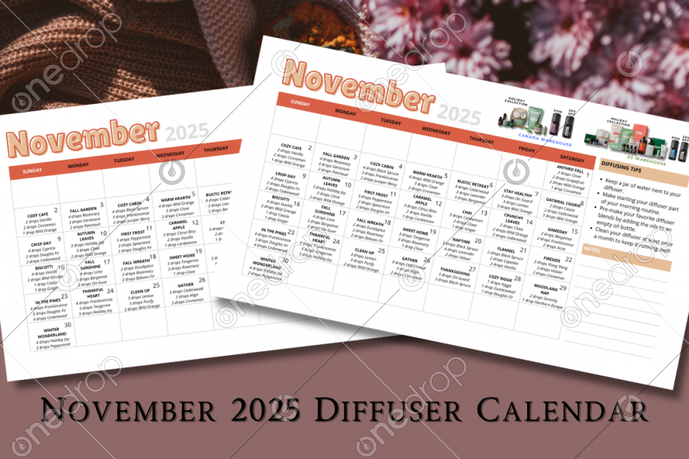 Diffuser blends for everyday of the month! There is one calendar with the promos on it and one without.