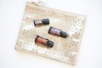 Two high resolution images of a 15 mL Bottle of Frankincense and Lavender with a 5 mL Bottle of Roman Chamomile Essential Oil on a Gold Essential Oil Case. It comes on a white background for a minimalist feel.