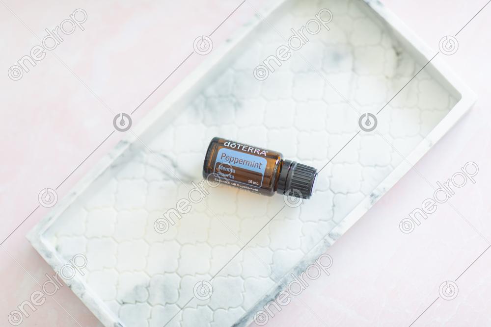 15 ml Essential Oil Bottle of dōTERRA Peppermint on a Marble Tray