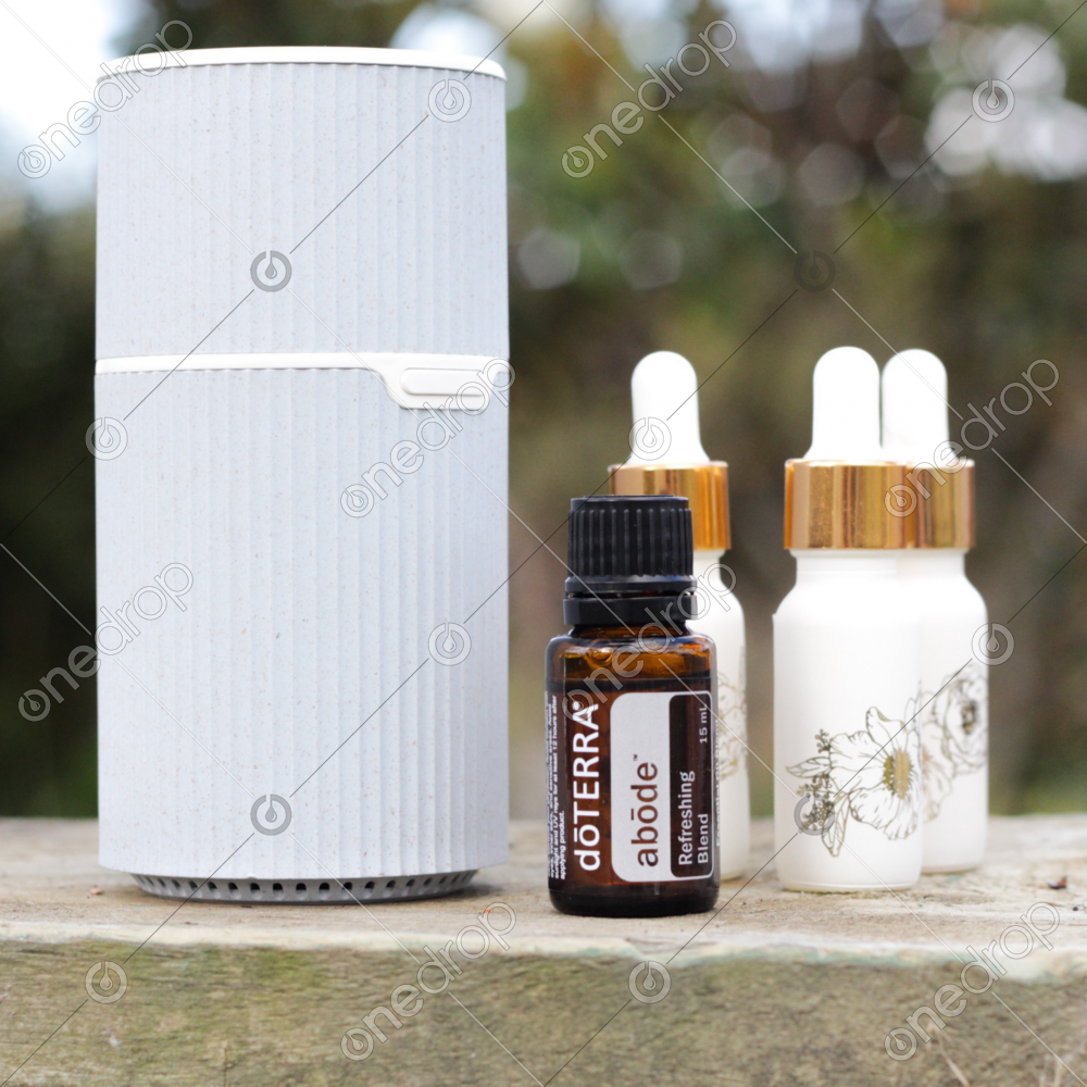 15ml Abode essential oil blend with Pilot diffuser and 3 decorative dropper bottles