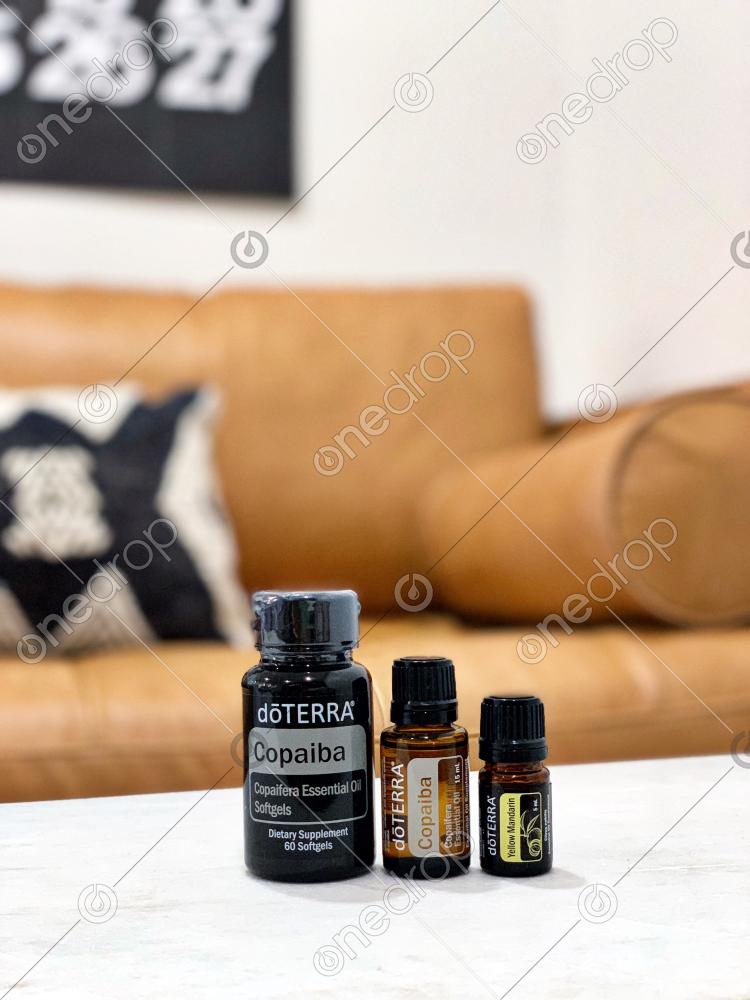 dōTERRA Copaiba Softgels, Copaiba (15ml) & (5ml) Yellow Mandarin in a Natural Setting