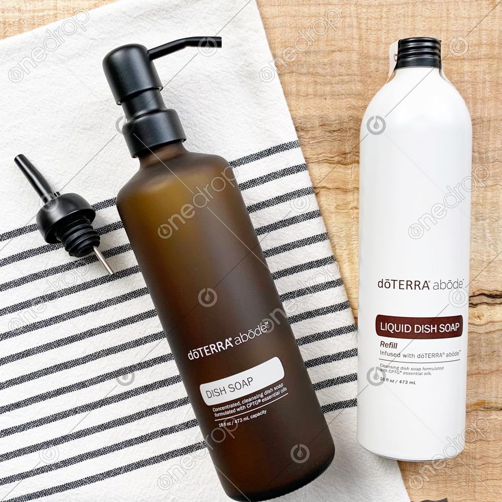 Features abōde Dish Soap & Refill in a Flat Lay.