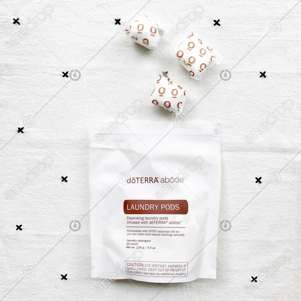 Features the abōde Laundry Pods (10 count) in a Flat Lay.