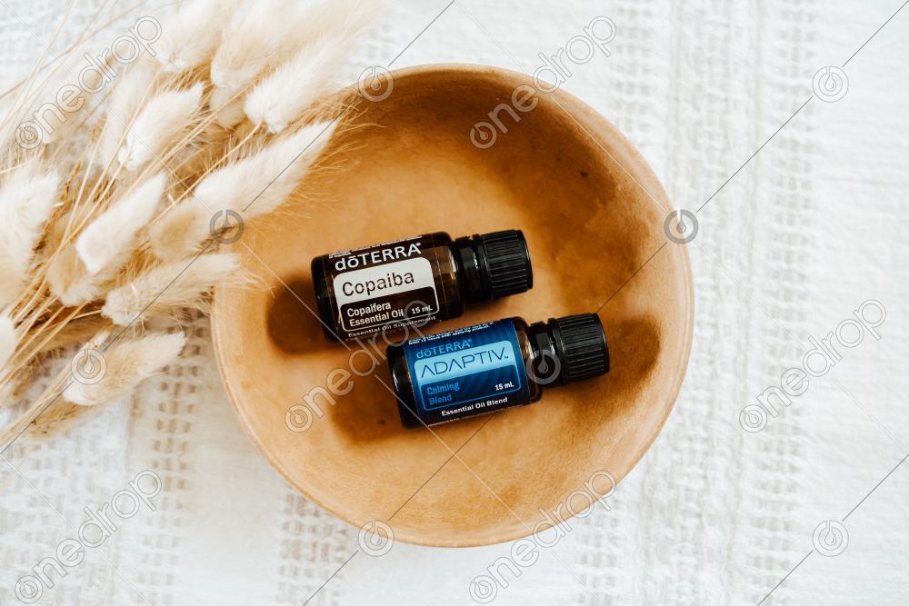 Horizontal Image of Copaiba and Adaptiv. Pair these two oils together to soothe anxious feelings and promote calmness.
