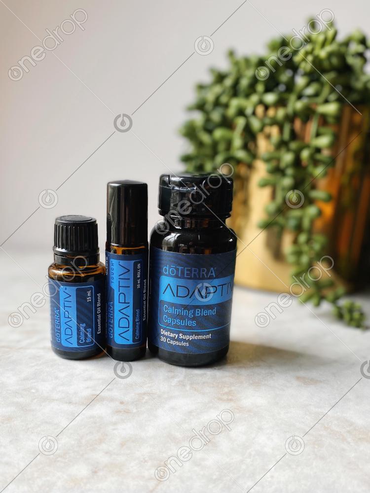 The adaptiv line of products on a white and gray background with a plant in a gold pot.