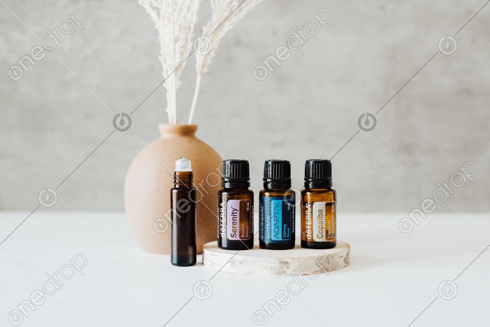 Horizontal Image of Adaptiv, Serenity and Copaiba. Pair these oils together in a Roller Bottle with a carrier oil to help support and ease anxious feelings.
