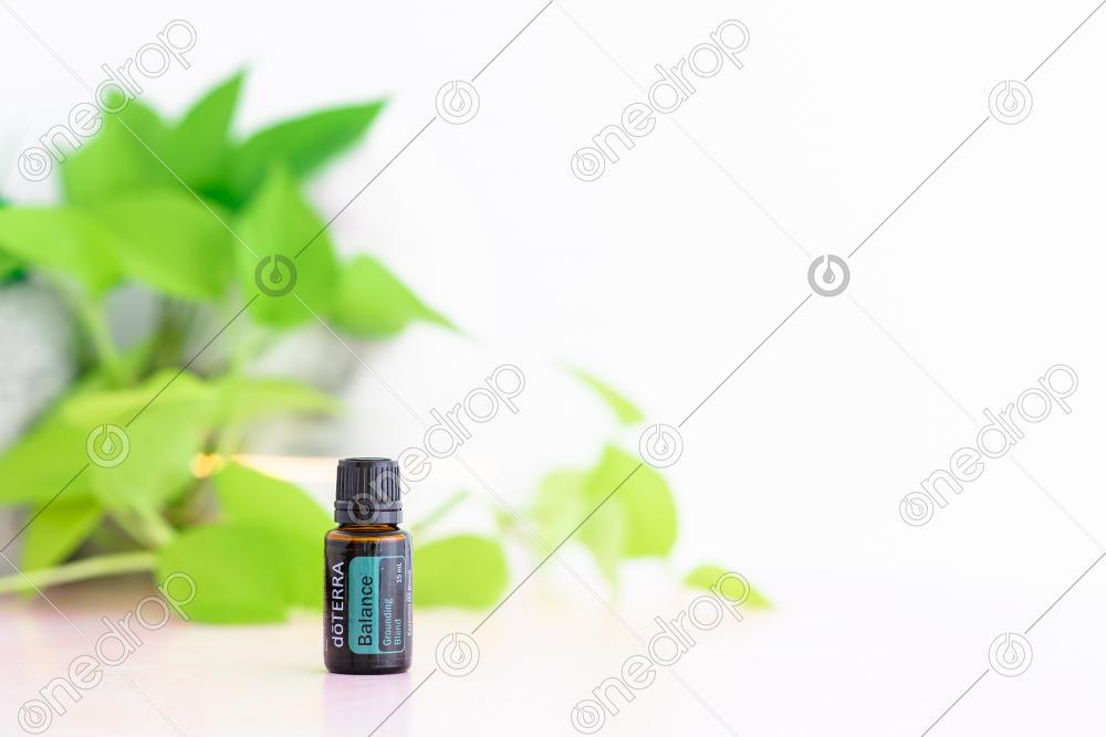 dōTERRA Balance® 15ml Essential Oil on White Background with Plant Leaves