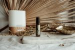 High Res image of Beautiful Touch standing on a marble board with Lumo diffuser, dried palm leaf in background.