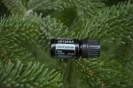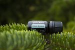 Beautiful photos of Black Spruce 5ml essential oil, laying on a pine branch.