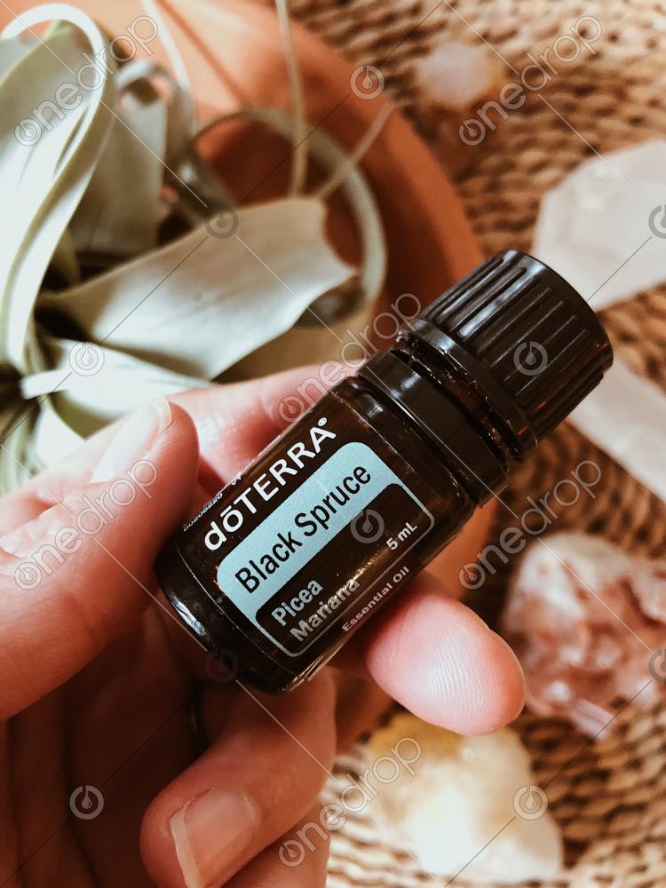 Black Spruce bottle w/ Crystals & Plants