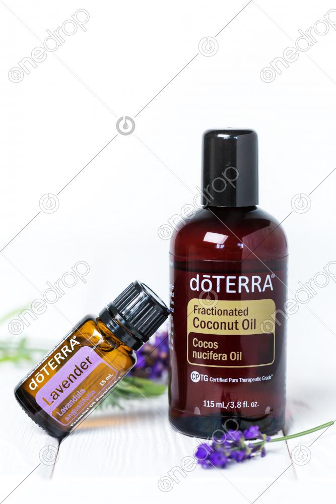 Bottle of essential oil dōTERRA Lavender and coconut oil