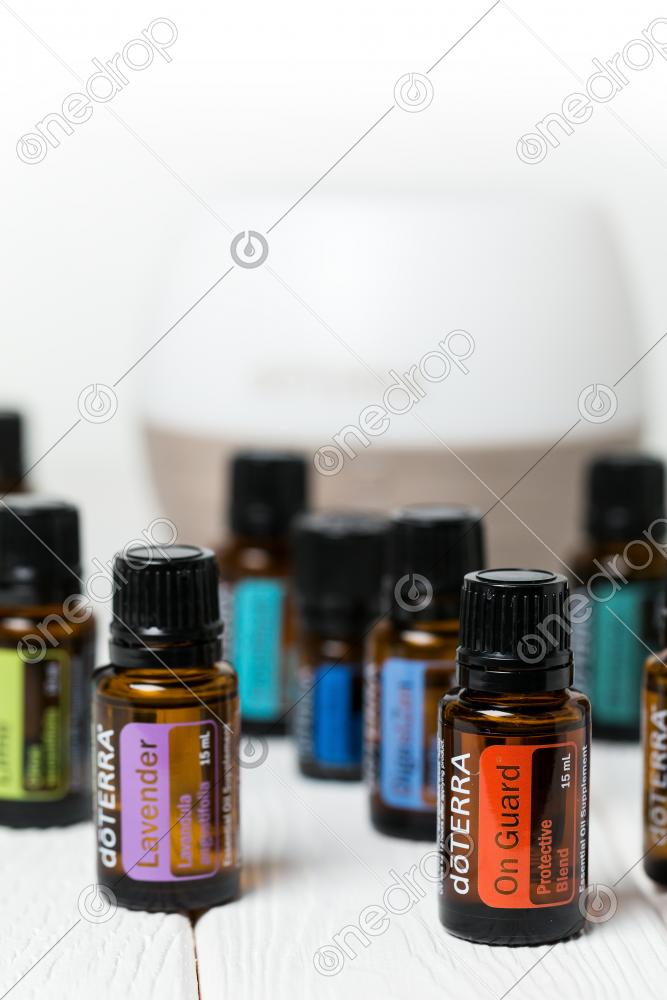 Bottles with essential blend oils dōTERRA On Guard and dōTERRA Lavender