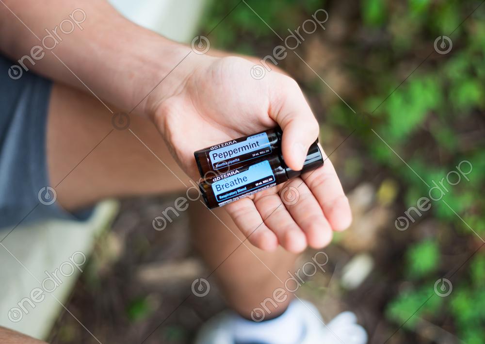 This high resolution photo features doTERRA Breathe® Touch and Peppermint Touch being held in a man's hand. Sports themed. These two oils are great before a workout or game. Rub dōTERRA Breathe® over chest to open airways. Rub peppermint on the back of your neck to help cool you off.