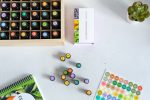 Sample bottles 1 ml with top essential oils and Introduction Kit, collection in wooden box, learning guides on white background