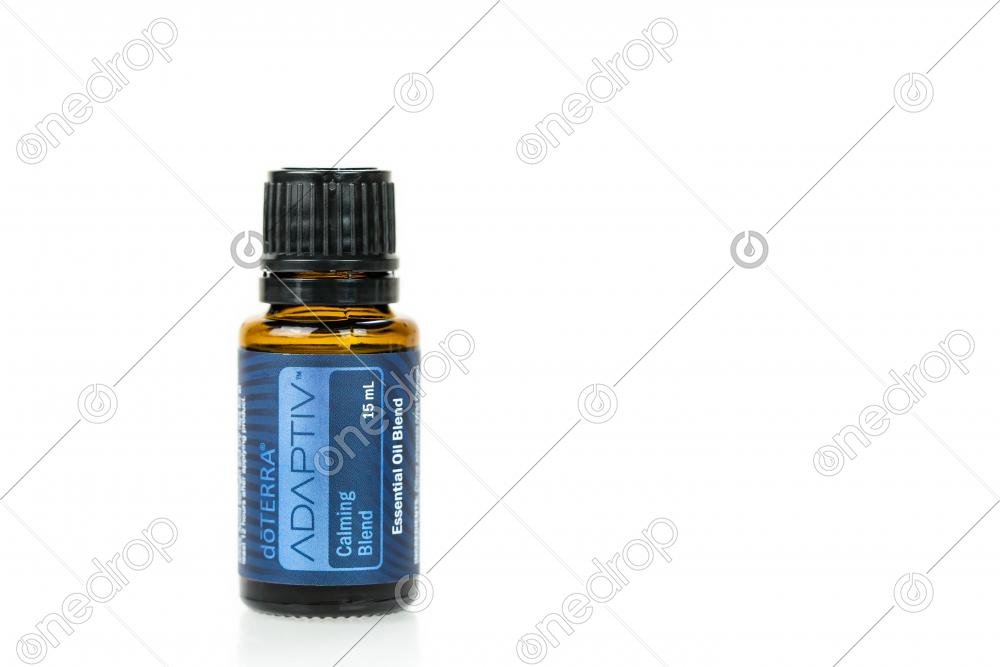Essential calming blend Adaptiv isolated on white background with copy space.