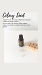 High resolution vertical and horizontal .jpg photos of a bottle of Celery Seed on a neutral background with Veggie Capsules. Two images contain verbiage describing the benefits of Celery Seed oil, one square sized and one sized for Instagram stories.