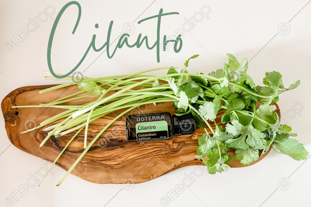 Cilantro Oil Bottle - Simple Graphic with Herb Flat Lay